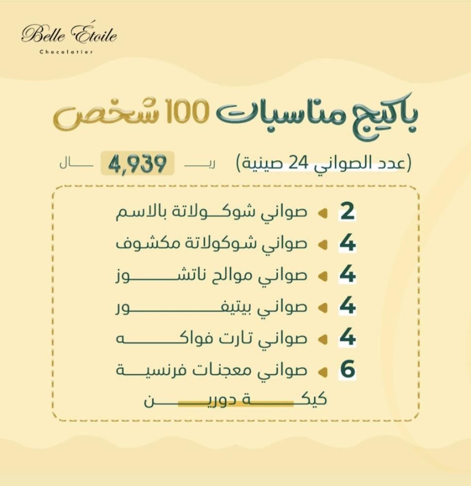 باكيج فرح يبيض الوجه، مناسب لعدد 100 شخص و يحتوي على 24 صينية فاخرة مشكلة ما بين حلويات و موالح.